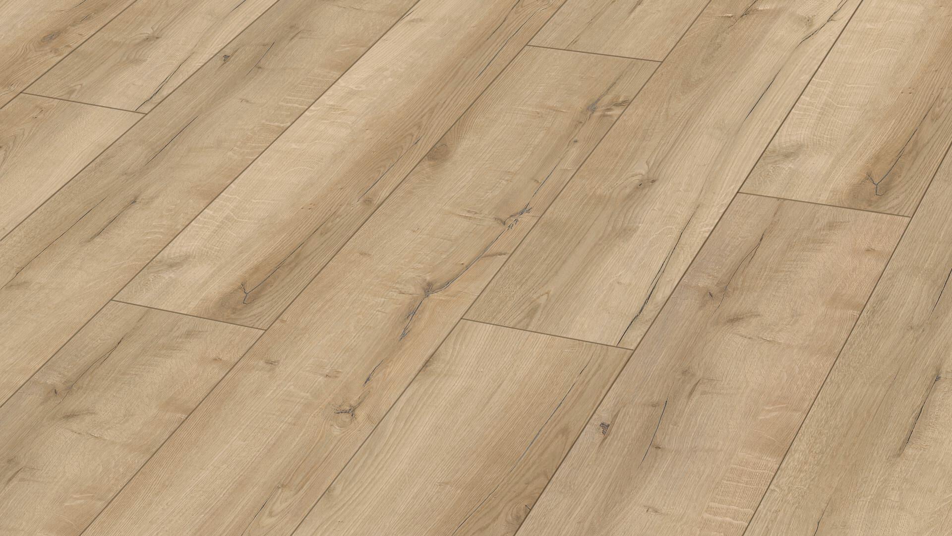 Embossed surfaces convey even more authenticity for floors – especially with the special pore effect printing. As with this the pores, filled knots and cracks are individually matched to the decorative image underneath. Different depths and degrees of gloss determine the variety of the special pore structures and give this floor a really authentic appearance.